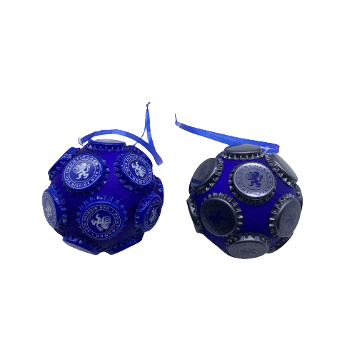 Handgefertigte Christbaumkugeln (2er-Set) aus originalen Puntigamer Kronenkorken.
